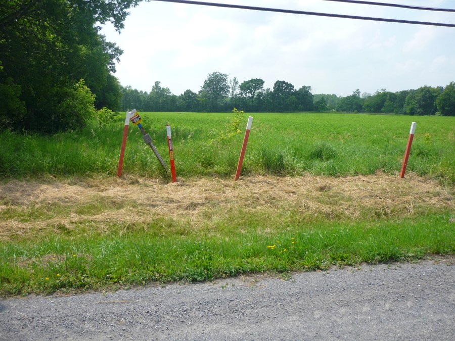 Attachment 1 – Perth Road Crossing Glenburnie. A new sign stuck in ground with markers. All are already falling over. July 3 2013