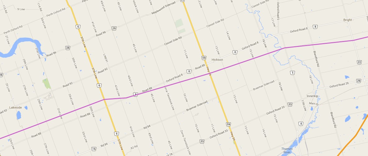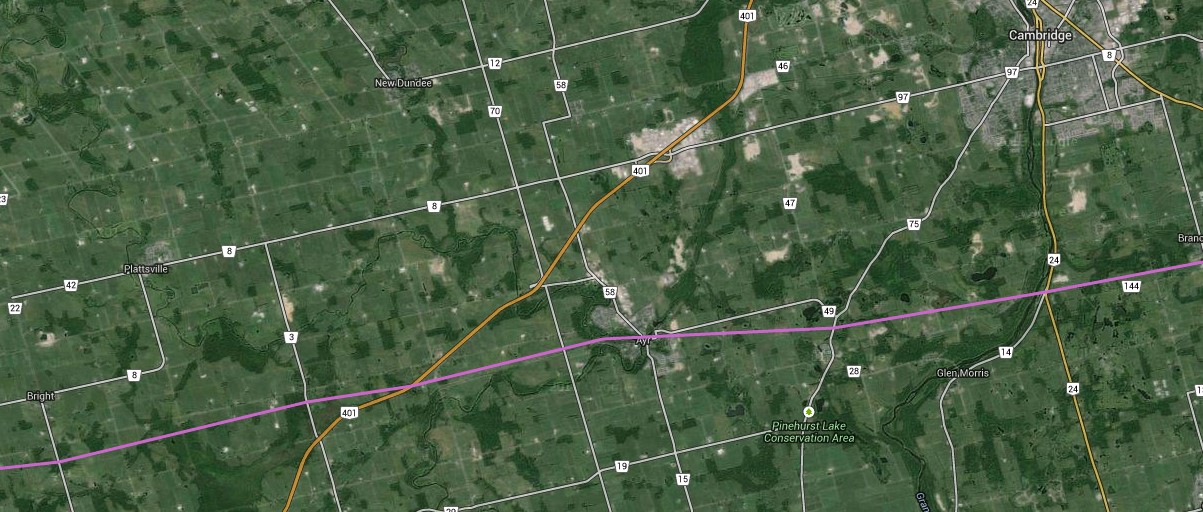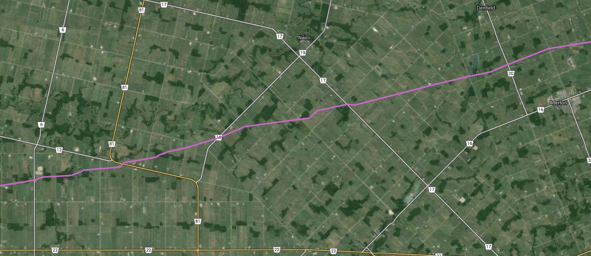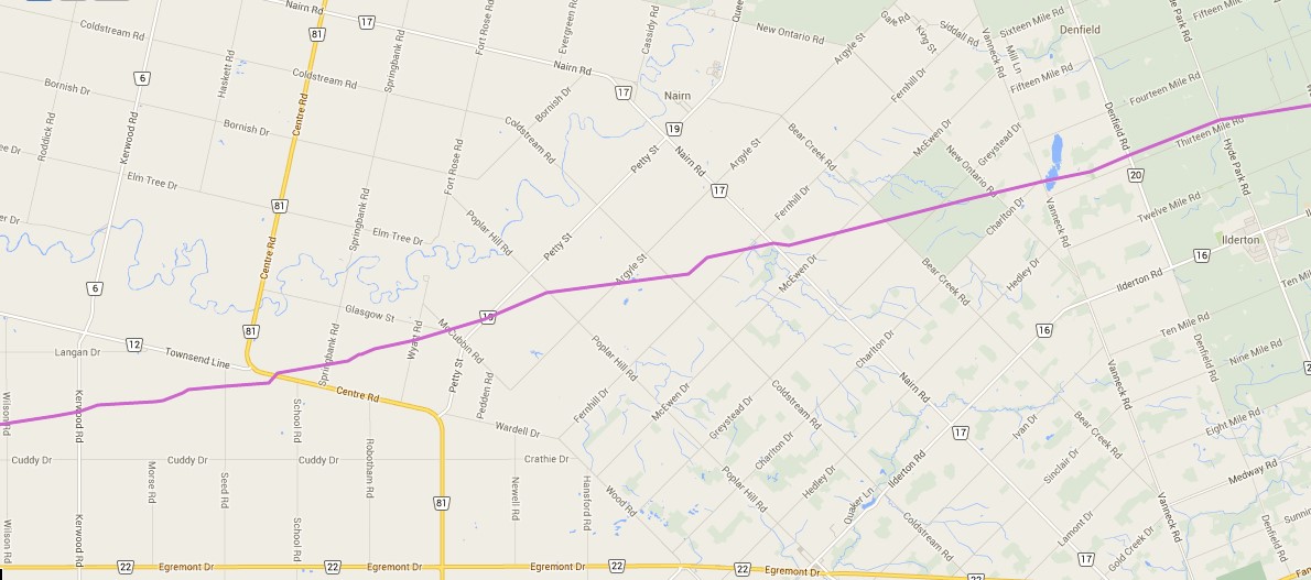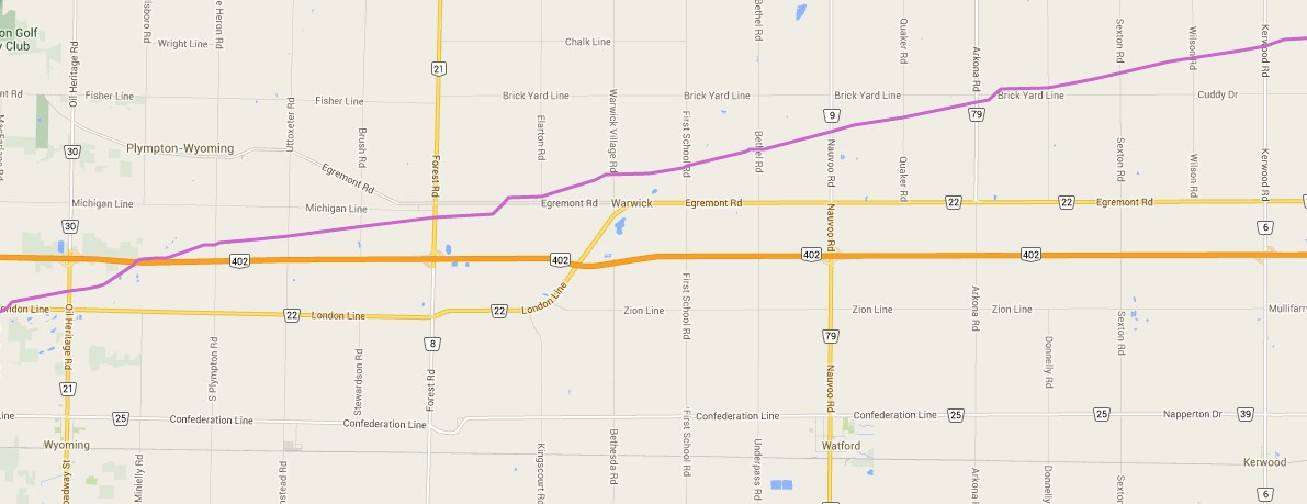 Maps are organized from West to East between Sarnia, ON and Westover, ON (Hamilton) The purple line represents the pipeline right-of-way (ROW).
