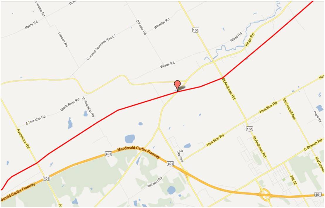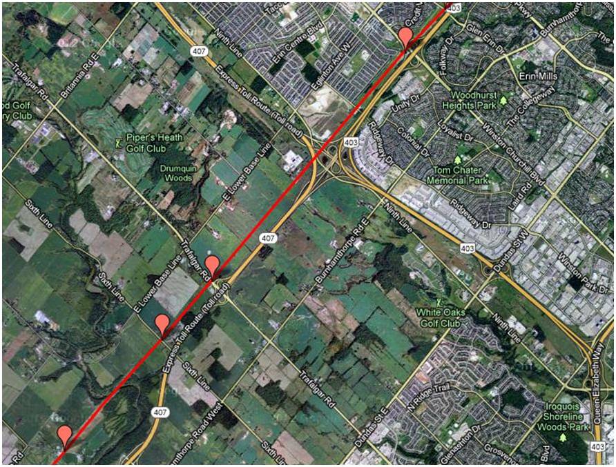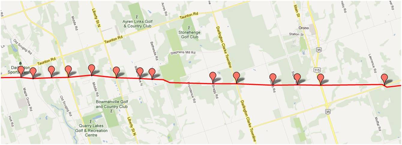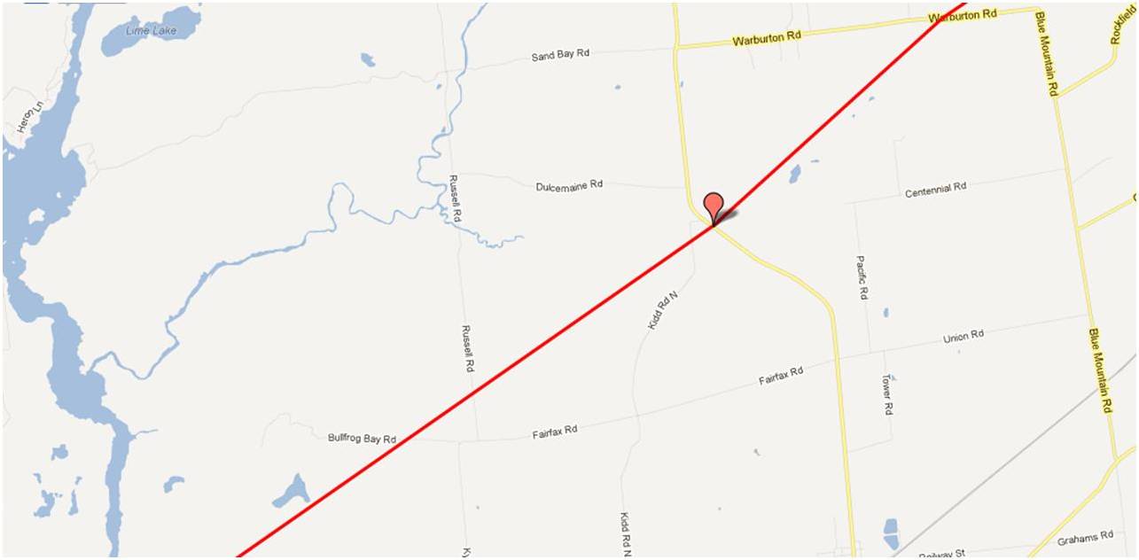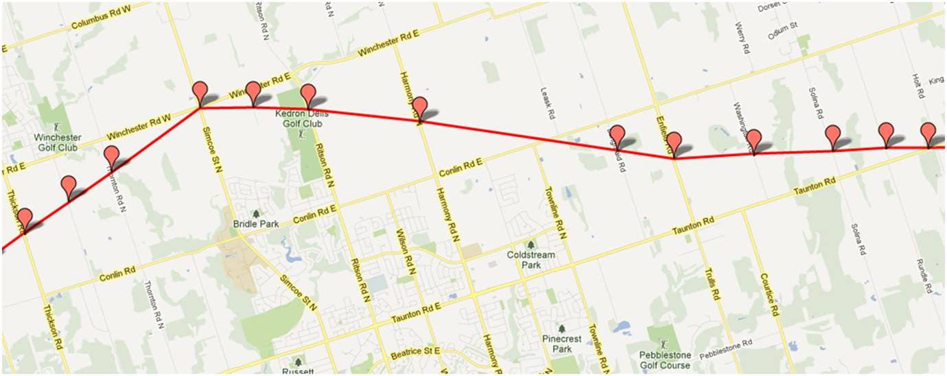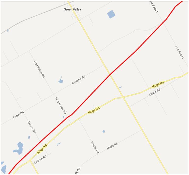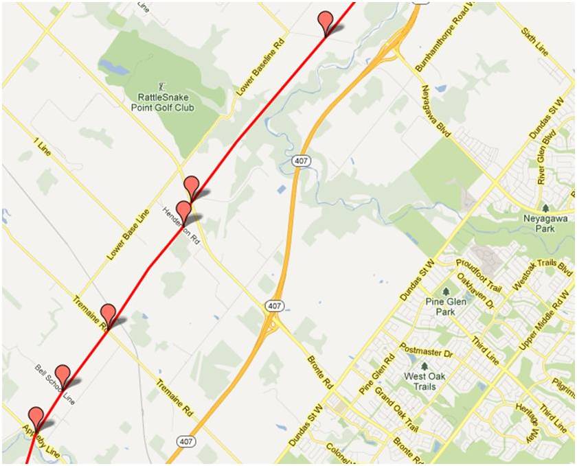 Would it be possible to see a map from Bryanston to where the line crosses the Thames River north east of London Ont.