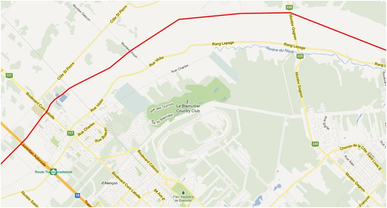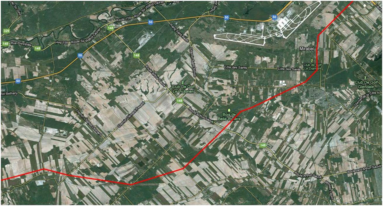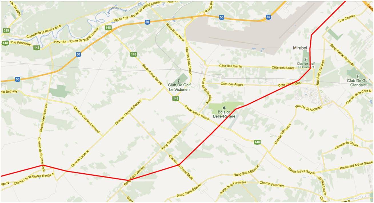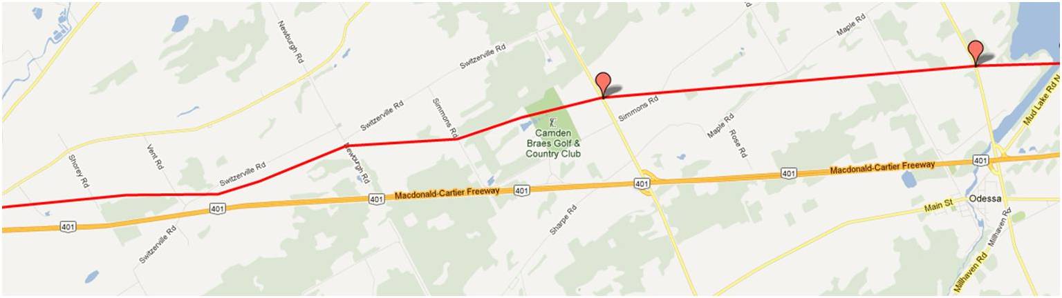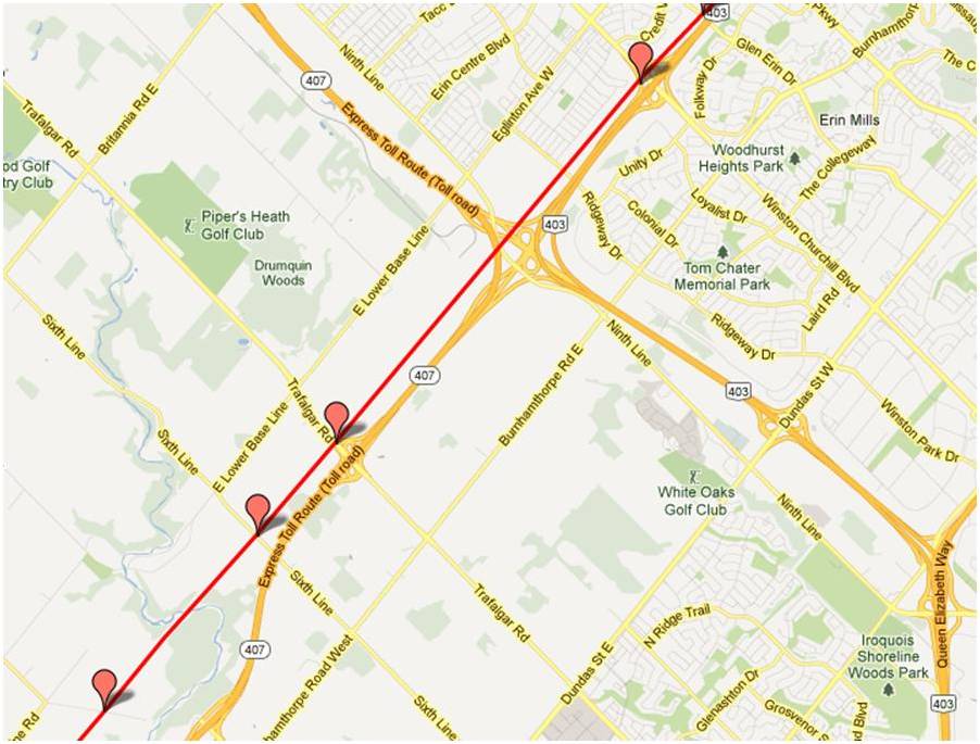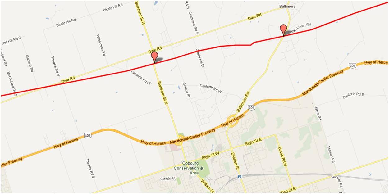 Would it be possible to see a map from Bryanston to where the line crosses the Thames River north east of London Ont.