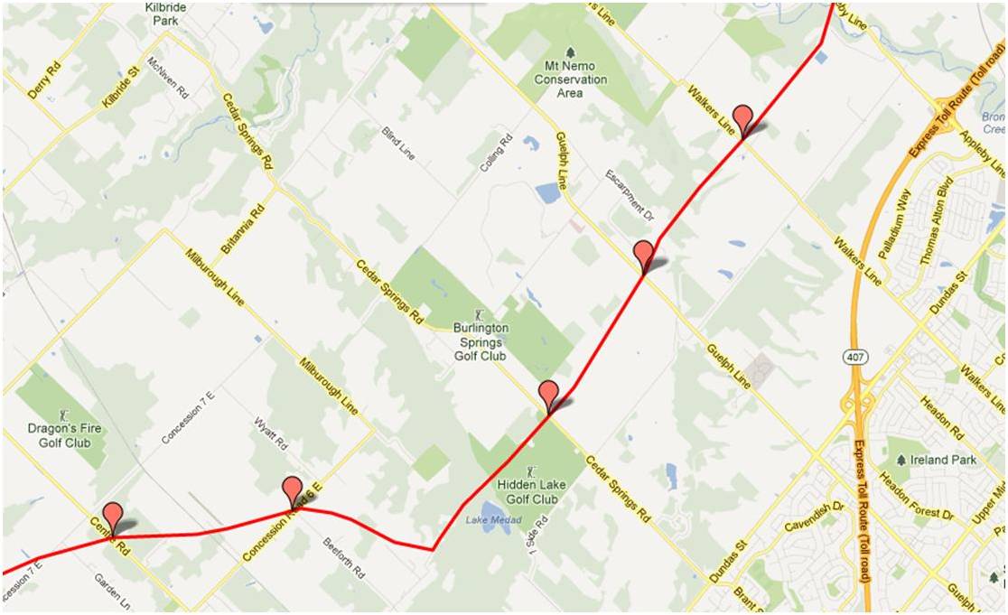 I would like to see maps (at least one) WEST of Hamilton (Westover). In fact, all the way from Sarnia, if possible. Thank you.
