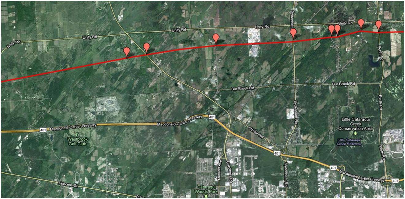 Thank you very much for your input. We have now posted a Brockville/Maitland map as requested. The line runs between Centennial Rd and Buells Creek Reservoir, going through the solar farm before crossing South Augusta and continuing east just below Stones Corners. Please let us know if you have any further questions and thank you for helping to raise awareness about Line 9.