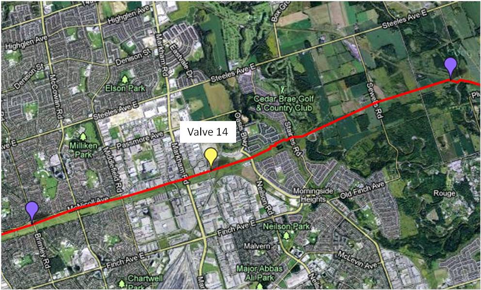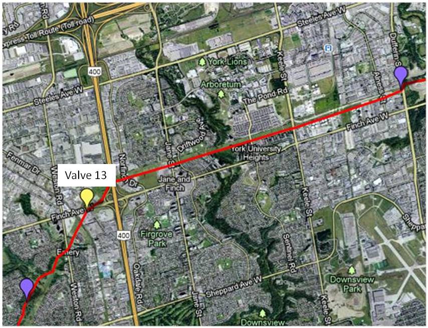 As a result of major grading required for proposed West Link highway connector and transit corridor, a new section of pipe needs to be installed beneath the proposed highway connector and transit corridor at lower elevation, and be tied-in to exising Line 9 (400m of 30″ pipe to be installed). |